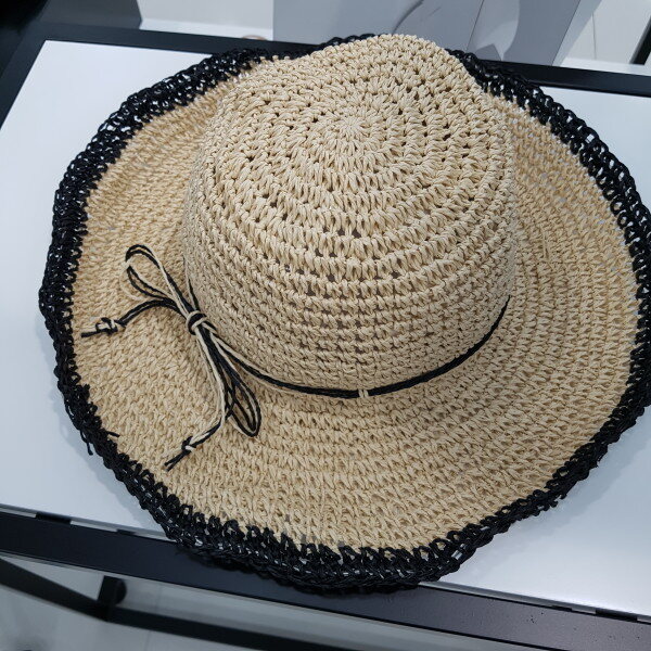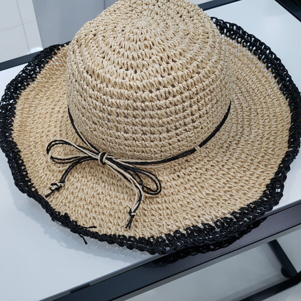 페이퍼소재에 챙모자 입니다ㆍ?리본장식이 귀여워보이며 바캉스 여행시 접을수 있는 활용도 좋은 아이템 입니다챙 전체폭은 35센치 입니다