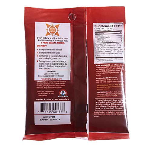 Studio : Redd Remedies Publisher : Redd Remedies Binding : Health and Beauty Product Description Finally, a great-tasting Throat Drop that is non-GMO, Gluten Free, Vegetarian and completely natural! There is nothing else like the experience of our cooling menthol vapors from pure essential oils to help you breath and soothe your throat. 0