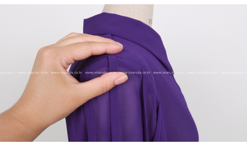 余裕のある袖ラインは、ピンタクでポイントをつけて体型がカバーされます