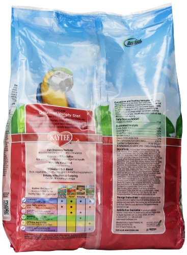 Studio : Kaytee Publisher : Kaytee Binding : Misc. Product Description Kaytee Fiesta Macaw food is a nutritionally fortified gourmet diet made of a premium blend of fruits, vegetables, seeds and grains offering maximum variety, fun and nutrition for pet birds. Fiesta contains prebiotics and probiotics to support digestive health and is formulated with your bird species in mind. Kaytee understands that sharing your life with a pet bird is not only enjoyable but very enriching. Kaytee shows our love by ensuring we provide your pet bird with the best nutrition for a long and healthy life. With over 150 years of nutritional experience, it's no wonder why Kaytee is at the heart of every healthy feeding routine. 0