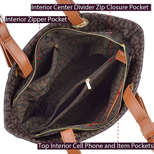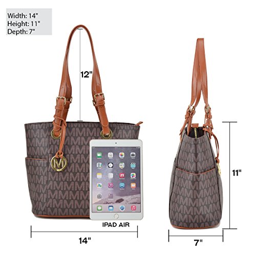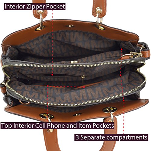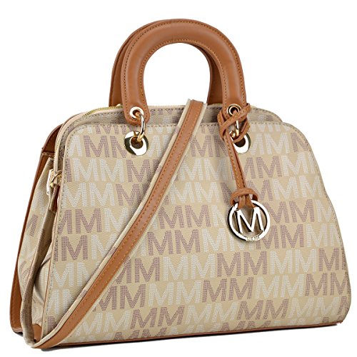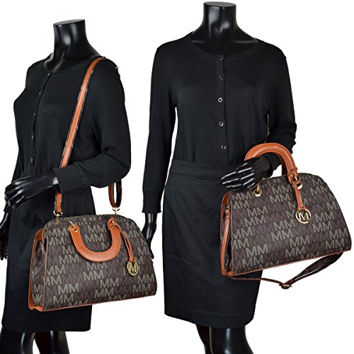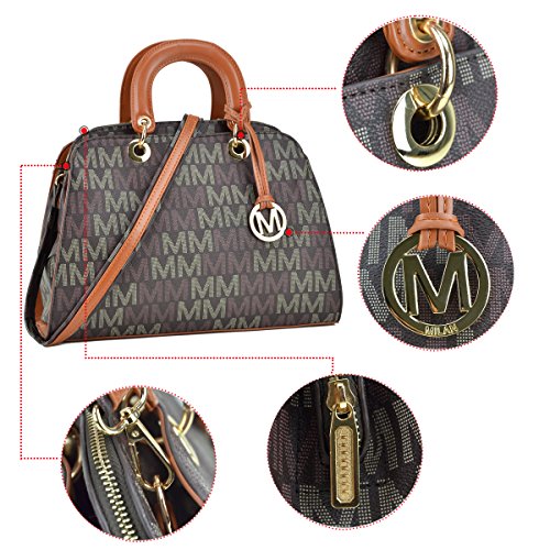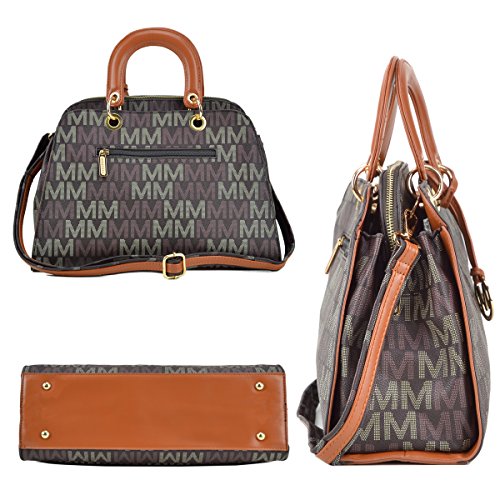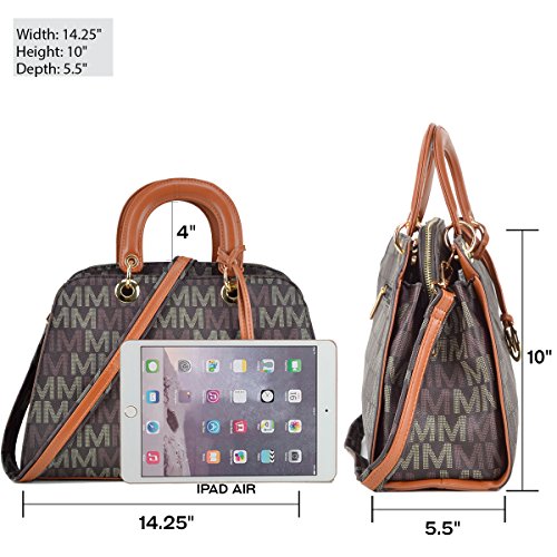 -. Feature : ~High quality PU leather.USA Brand (Imported)~The Beautiful Satchel Bag using high-quality PU leather, with all stitches in neat and orderly rows. We have always been strict with both the choosing of materials and processing of products, in other words, we are better at material selection and superior in product making, taking every detail into consideration for the dear customers to meet as much as possible their own styles. / SIZE: Approx Size: 14.25"W x 11"H x 5.5"D which means this special design handbag can also be used as work satchel, laptop briefcase bag and even traveling bag. This beautiful handbag for women is large enough for carrying your wallet, make-up, laptop, books and even some mother stuff however still looks so fitting at the same time. / Multi-Pockets and Multi-Functional: This Classic Semi Dome Shape Women Satchel is designed with multi-pockets to ensure the convenience when you carry it.Top Zipper Closure on Center Main Compartment + Exterior Back Wall Zipper Pocket + Interior Back Wall Zipper Pocket + Interior Front Wall Open Top Item Pockets + Additional compartments (in between the center zipped main compartment) with magnetic snap closure / Detailed Construction: Two tone monogram/signature logo + Adjustable and Removable, crafted in two tone monogram logo Shoulder Strap + Gold Tone hardware, accents, studs, and zipper pulls + Faux Leather Accented Loop/Round Handles + Monogram Logo imP.R.Inted Fabric Interior / Limited EDTION - Macro M.Kellyy Handbag Collaborative Design (This's not associated with brand)