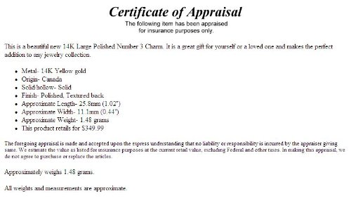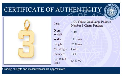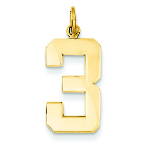 -. Title : 14K Yellow Gold Large Polished Number 3 Charm Pendant