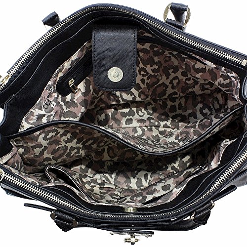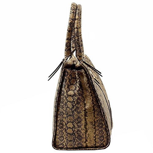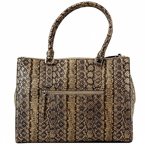 -. Brand : GUESS -. ClothingSize : 10.75 H x 14.5 W x 7.75 D In -. Color : orange -. Department : womens -. Feature : Two top zip closure compartments on front and back of bag / Double handles with a drop length of 6 inches / Triple compartment lined interior features backwall zippered pocket, two frontwall slip pockets, and middle zip compartment / Back exterior features one zipper pocket / Polyestercotton twill interior lining -. Label : GUESS -. Manufacturer : GUESS -. PackageQuantity : 1 -. ProductGroup : Shoes -. ProductTypeName : HANDBAG -. Publisher : GUESS -. Size : 10.75 H x 14.5 W x 7.75 D In -. Studio : GUESS -. Title : GUESS Greyson Status Satchel - Python