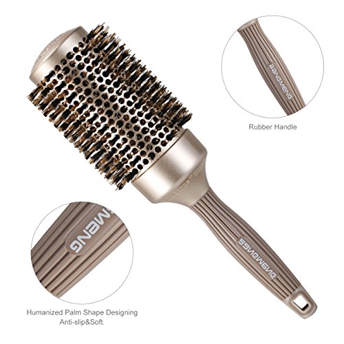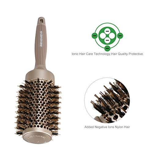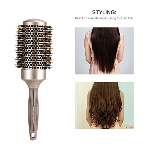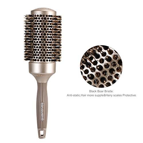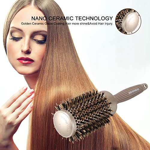 BANGMENG Round Barrel Anti-Static Hair Brush with Boar Bristles, Nano Thermal Ceramic Ionic Tech | For Extra Shine | Protect Hair, Enhance Texture, For...