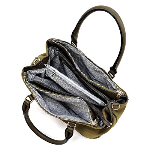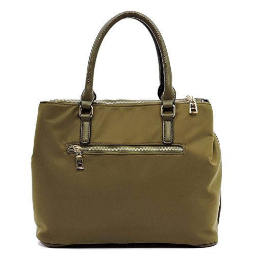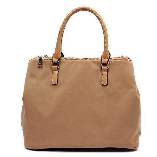 -. Brand : Chill X -. Department : womens -. Feature : Size: 13" L x 10" W x 6.5". Handle drop: 7". / Nylon with synthetic leather trim, gold-tone hardware. / Back zip pocket. Detachable shoulder strap. / Zip top closure. Multi compartments. Lined inside. / Interior slip and zip pockets. Feet on bottom. -. ProductGroup : Shoes -. ProductTypeName : HANDBAG -. Size : One Size -. Title : Isabelle Nylon Multi Compartment Satchel Handbag