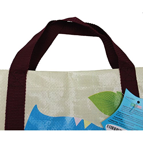 EcoJeannie Super Strong X-Large Laminated Woven Reusable Shopping Tote Bag (Avail: Set of 1,2,3,4,5 Bags), Free Standing, Recycled Plastic w/ Bottom Board & Reinforced Nylon Handle - WTS051 (5 Pack)