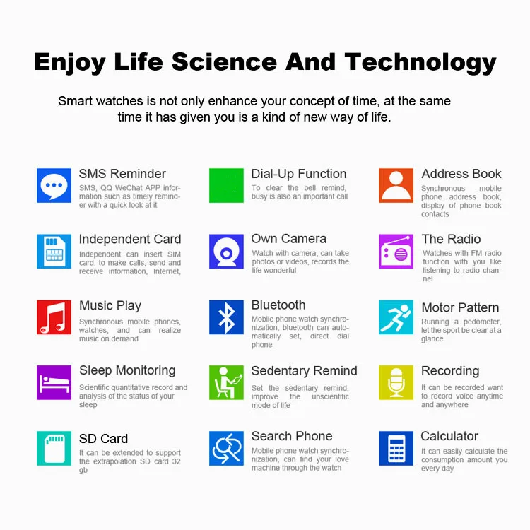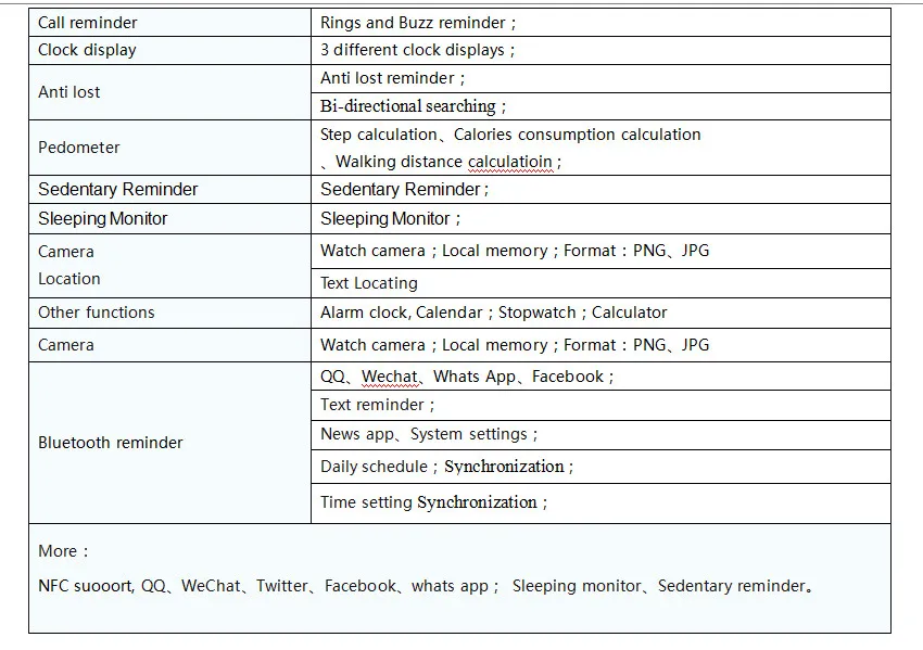 Feature:Sleep Tracker,Complete Calendar,Call Reminder,Stop Watch,photography,LED display,Fitness Tracker,Bluetooth,Auto Date,Answer Call,Chronograph,Alarm,Dial Call
