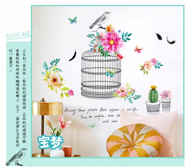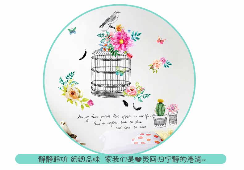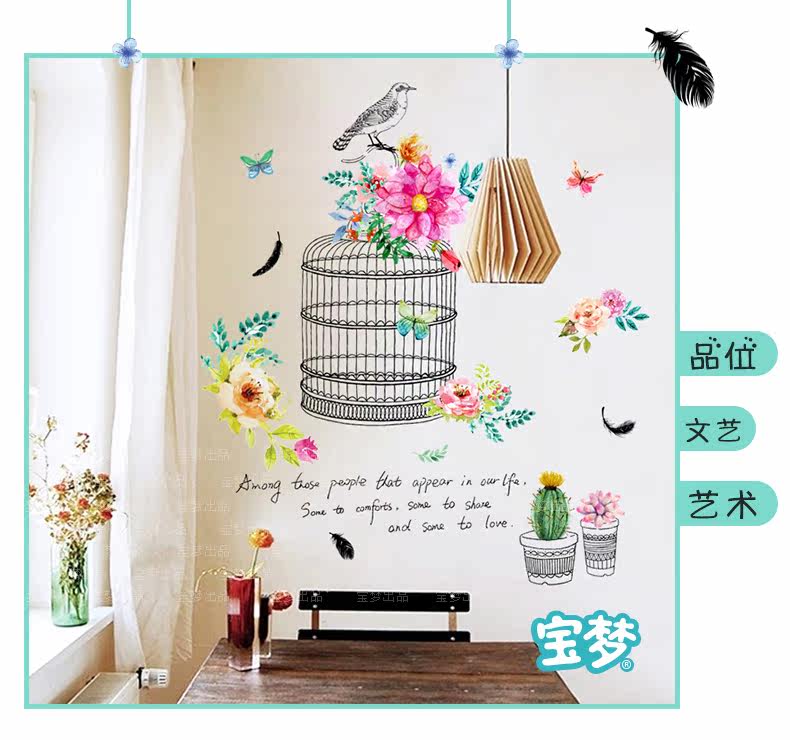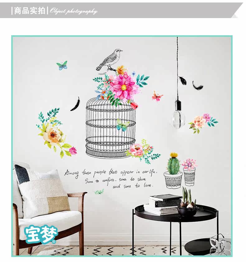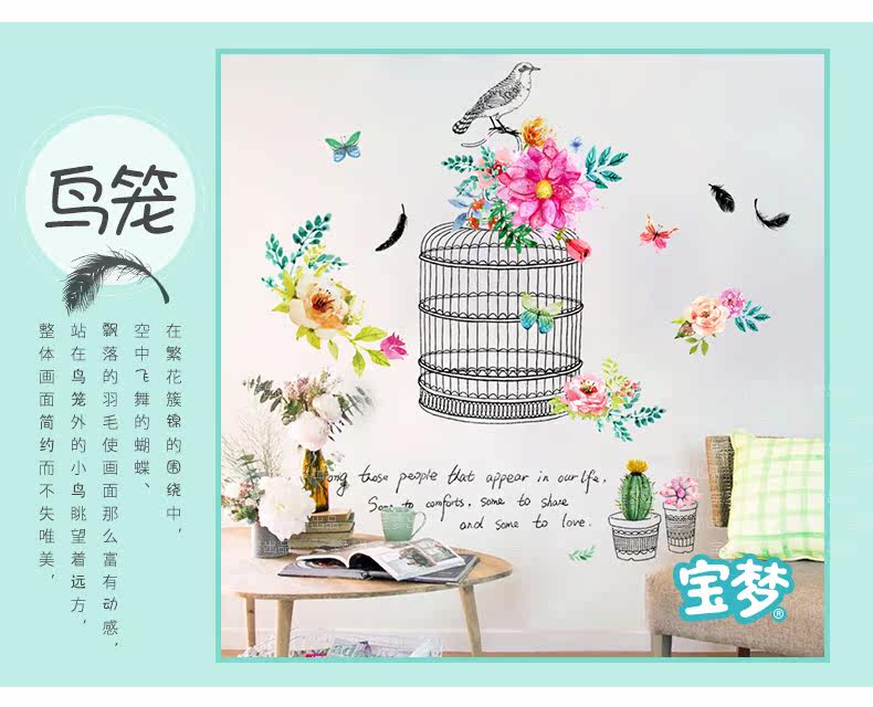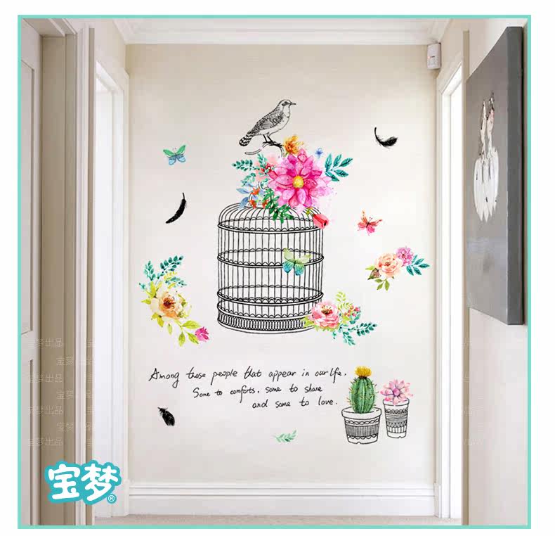 时尚文艺花鸟装饰品墙贴纸创意客厅卧室走廊玄关背景自粘墙纸贴画