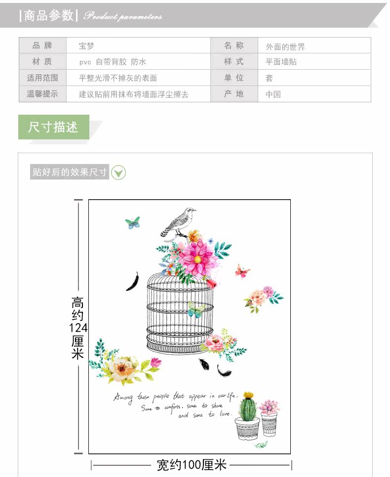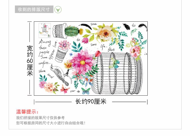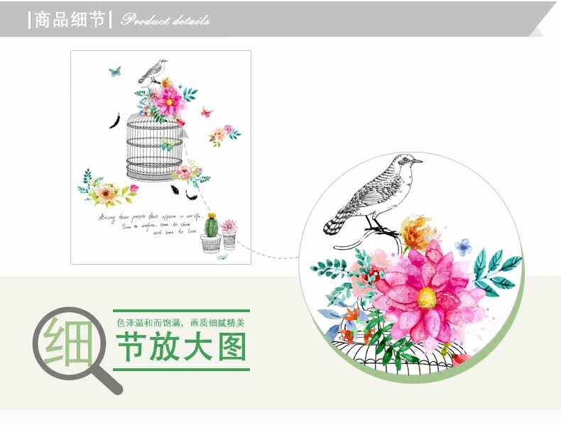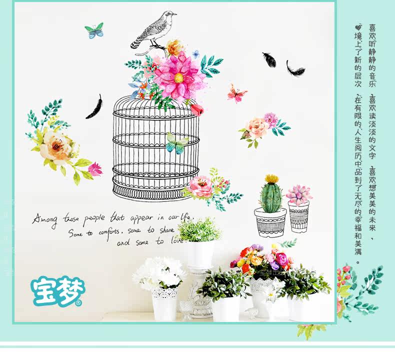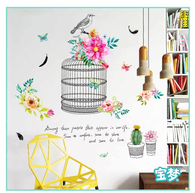 时尚文艺花鸟装饰品墙贴纸创意客厅卧室走廊玄关背景自粘墙纸贴画