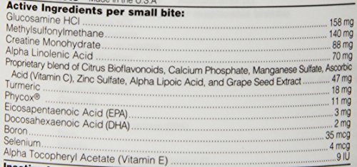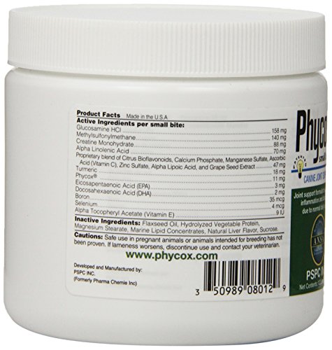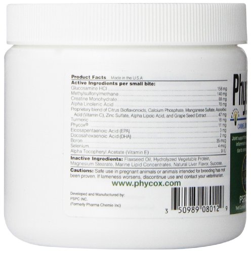 For use in dogs only. A patented formula with Phycox. A natural source of phycocyanin with proven health benefits. Recommended to support joint mobility and healthy bone structure. Provides enhanced antioxidant protection and Omega-3 Fatty Acids in a palatable mini soft chew.Feature