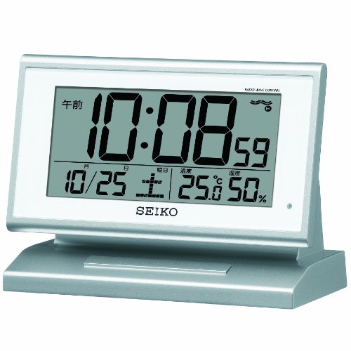 -. Title : セイコー クロック 目覚まし時計 自動点灯 電波 デジタル カレンダー 温度 湿度 表示 夜でも見える 銀色 メタリック SQ768S SEIKO