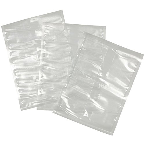 The Nesco VS-06B Vacuum Sealer Bags are 50 pre-cut gallon sized bags, BPA-free and safe to microwave, boil and freeze. You can even put them in the dishwasher and re-use. Traditional storage methods can allow food containments to seep in. Oxygen-fed mold and bacteria can cause food spoilage, moisture leads to freezer burn and penetrating odors compromise flavors. Vacuum sealing extracts the air and provides a moisture barrier so your food will stay fresh and last longer. Our patented bagging material is specially designed to lock in freshness and flavor by keeping air, moisture and odors out. The multi-layer construction is tear-resistant and features cross-venting channels on both sides to allow for maximum air extraction. Dimensions: 11.0" X 15.75".Feature