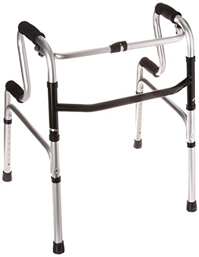ReleaseDate : 2016-07-23 Studio : MABIS/DMI Healthcare Publisher : MABIS/DMI Healthcare Binding : Health and Beauty Product Description Easily Get up From a Seated Position This versatile HealthSmart two-level walker has two handle positions, one lower and one higher, giving you something stable to grab on to as you stand up from a seated position. It makes it much easier to rise from a bed, chair, wheelchair or toilet. Once you are up, simply grip the higher handles and use as a regular walker. The foam handles will feel comfortable in your hands. This handsome walker in eye-catching metallic tones, is an excellent choice for both men and women. It's simple to fold by pushing the button at the top, making it flat for storage or travel. It also works well as a toilet safety frame and will help you sit down and stand up with more ease and convenience. You can adjust the height form 28 to 35 inches, making it a great fit for most people. Features ? This versatile walker has two handle positions, one lower and one higher, giving you something stable to grab on to as you stand up from a seated position. ? Makes it much easier to rise from a bed, chair, wheelchair or toilet. Once standing, it works as a regular walker. ? Push button at top releases it to fold flat for storage or travel. ? Soft foam grip handles feel comfortable in your hands. Slip resistant tips add to safety. ? Also works well as a toilet safety frame to help you sit down and stand up more easily ? Higher handle height adjusts from 28 to 35 inches in 1 inch increments ? Lower handle height adjusts from 18 inches to 25 inches ? Distance between handles: 17 inches ? Overall size: 21 x 20 1/2 x 28 inches (at lowest height) ? Weight capacity: 300 pounds ? Contains latex 0