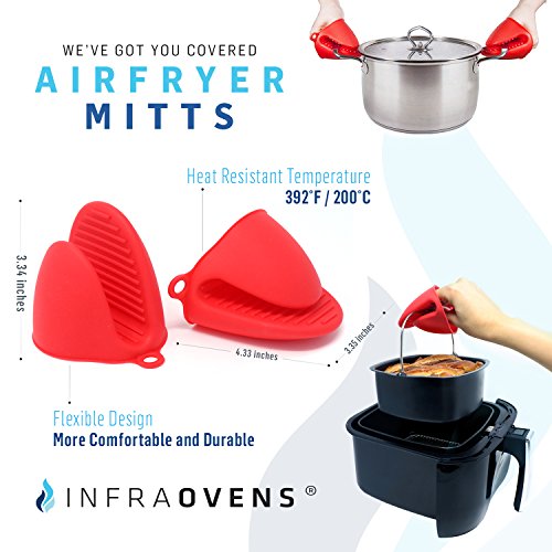 The Infraovens Mini Oven Mitts are Included for Easy Gripping of Hot Oven Accessories such as Racks, Pans and More. Made with Food Grade FDA Approved Silicone, the Mini Red Gloves can Nest each other for Easy Storage, are Flexible, Comfortable, Easy to Wear and have a Non-Stick Ridged Gripping Surface