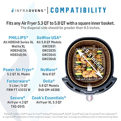 Ideal for all HD9240 Series XL, Air fryer Phillips Walita XL, HD9240/34, HD9240/94 / Phillips Avance XL / Philips Airfryer VIVA XL / GoWISE USA XL 5.8QT [ GW22631, GW22635, GW22645, GW22646 ] / Power Air Fryer XL 5.3 QT / Farberware 5 QT XL / Cooks Essentials Air fryer XL 5.3 QT, Secura 4.2 QT, TXG-DS15, NuWave Brio 6 QT, Della 5.8 QT, 048-GM-48268 and any other XL Air Fryers over 5 quarts with 9.5 Inches or Greater Diagonal Square Inner Basket