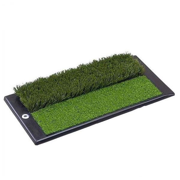 フェアウェイとラフ、2種類のアプローチの練習ができる2WAYマットです。ラフ、フェアウェイ、2つの芝でワングリップ圏内をものにする!!