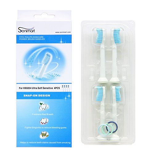 - Title : Sonimart Premium Ultra Soft Sensitive Replacement Toothbrush Heads 4-pack, replaces Philips Sonicare HX6053 Sensitive, fits Philips Sonicare 2 Series Plaque Control, 3 Series Gum Health, DiamondClean, EasyClean, FlexCare, FlexCare +, FlexCare Platinum, HealthyWhite and HydroClean Brush Handles, OEHHA Prop 65 Approved!