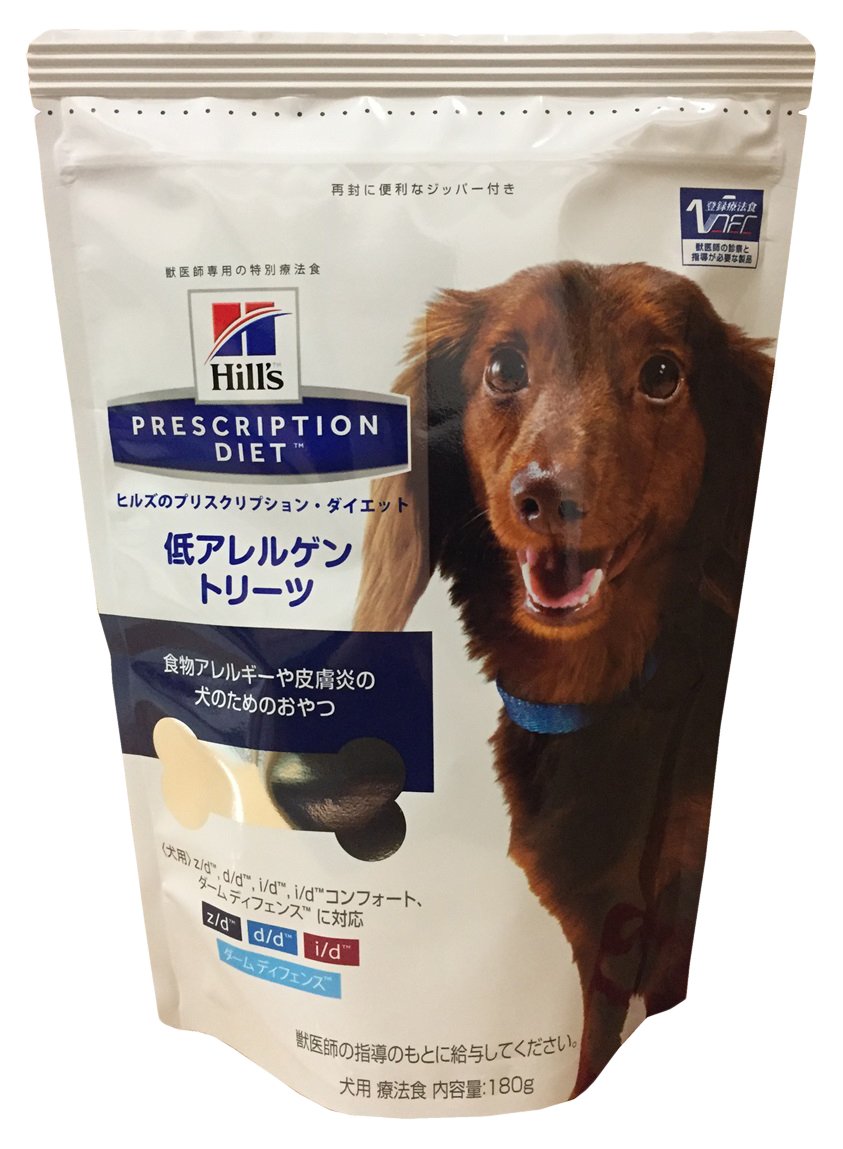 加水分解蛋白質を使用しています。 食物アレルギーや皮膚炎の犬に配慮した成分を調整したおやつとしての特別療法食です。 給与にあたっては必ず獣医師とご相談ください。 プリスクリプション・ダイエッ卜〈犬用〉z/d、d/d、i/d製品を給与している犬へおやつとして与えることができます。