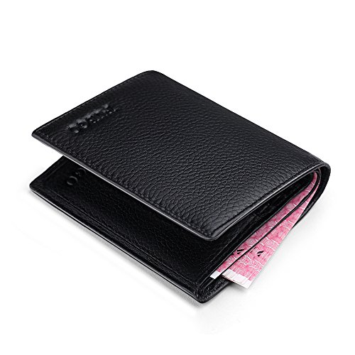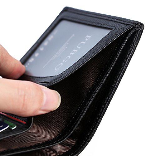 -. Feature : HIGH QUALITY LEATHER - Made of genuine cow leather and lining with polyester silk fabric ensures your things stored in good condition. / 6 card slots (1 of them are ID window), 2 interior pockets / COMFORTABLE - Feel secure knowing that wherever you are in the world, your personal information stay safe. It's a simple and effective way to protect yourself against the growing risk of identity theft / Dimensions - L 5.9" x W 4.7" x H 1.2", Fit your front pocket Nicely, wont bulge in pocket, and you feel comfortable even with long time sitting or driving.