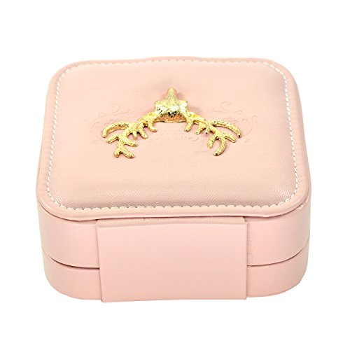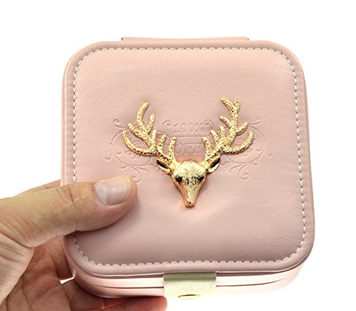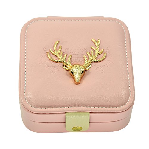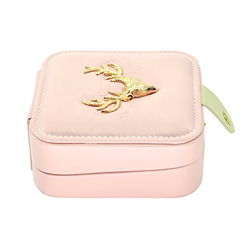 Faux Leather Golden Deer Elk Antlers Embroidered Jewelry Gift Box with Snap Closure, Pink