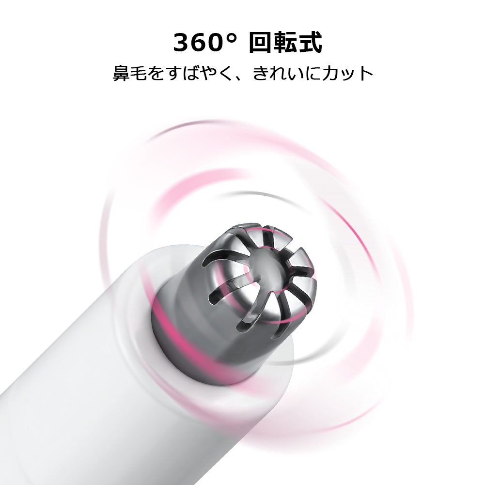 高精度のトリミング: 両サイドエッジ刃の眉毛カッターが、伸びすぎた眉毛を効果的にカットし、眉の形を精密に整えます。鼻毛カッターは360°回転式なので、より多くの鼻毛をキャッチし、効率的にカットします。