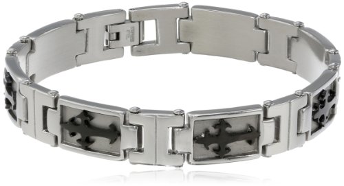 Men's Stainless Steel Black Ionic Plated Crosses Link Bracelet