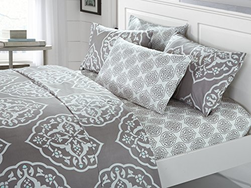 Specifications: ? Size: Queen ? Color Scheme: Grey ? Piece Count: 6 ? Set Includes: ? 1pc Printed Fitted Sheet (60" x 80" 12") ? 1pc Printed Flat Sheet (90" x 102" 4") ? 2pc Printed Pillowcases (21" x 27" 3") ? 2pc Printed Pillowcases (21" x 27" 3") ? Shipping Dimensions (approx.): L 16" x W 9" x H 3" ? Materials: Luxuriously brushed microfiber fabric