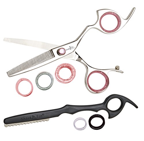 Shark Fin Professional Plus Line Rainbow Swivel Thumb 5.5" with Free 40 Tooth Thinner & Feather Blade Razor