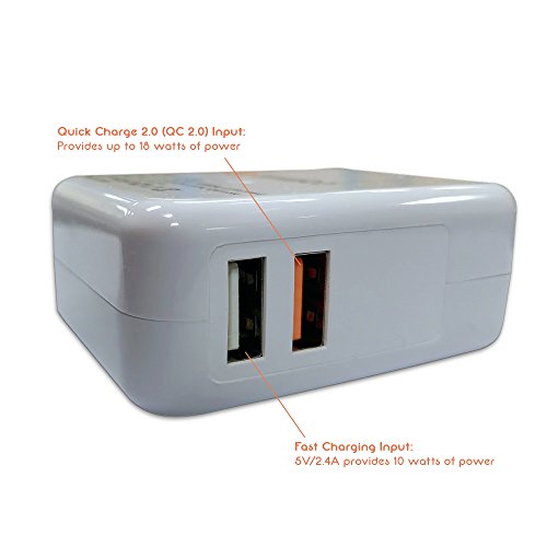 New Samsung Galaxy S8, S8+ Motorola Droid Z/Z Force/Z Play Type C USB-C Rapid Fast Dual USB Wall Charger - Pixel / Pixel XL Nexus 6P 5X LG G5 OnePlus2 - QuickCharge 2.0 - White
