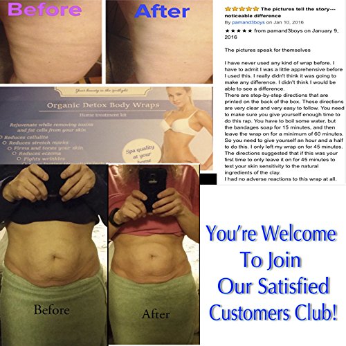 -. Feature : 100% Organic & natural ingredients - Spa quality at your home! Don't expose your delicate body to chemicals , Try our organic formula! / This kit includes 8 sachets of volcanic clay and organic herbal extract, plus 2 reusable wraps. / Reduce stretch marks, firms and tones your skin, reduces eczema, fights wrinkles and immediate inch loss. / Rejuvenate while removing toxins from fat cells and actively killing cellulite. / Comes With A Full Ebook On Detox Body Wrapping!
