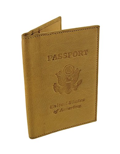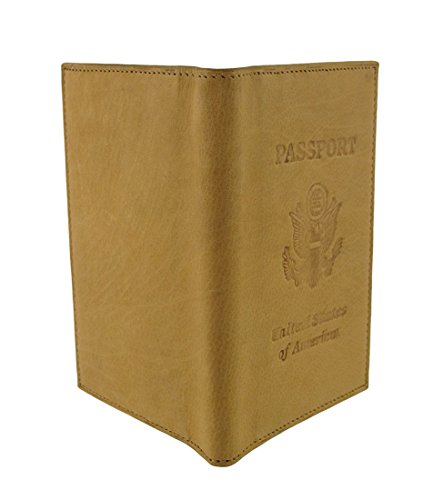 -. Title : Tan Leather USA Embossed Passport Holder Cover