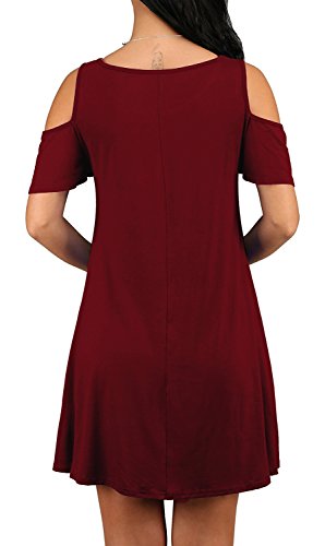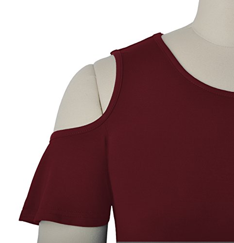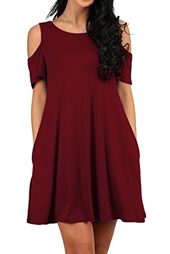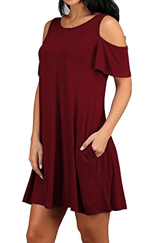 95%Rayon, very stretchy fabric, soft touched, light weight, can be easily to dress up. This cold shoulder shift dress is in solid color, with lovely ruffle sleeves and side pockets. Simple style to show your nobleness, in any single wear, or as a basic shirts, have a good show in all seasons.