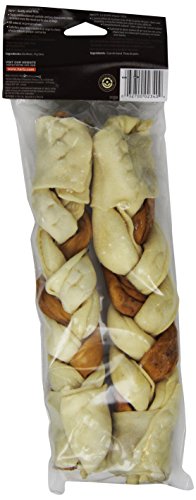 -. Feature : Combines the unique flavors of rawhide and pig skin into one satisfying chew. / Includes 2 all natural, 10 inch braided chew. / Perfect for large dogs over 50 pounds.