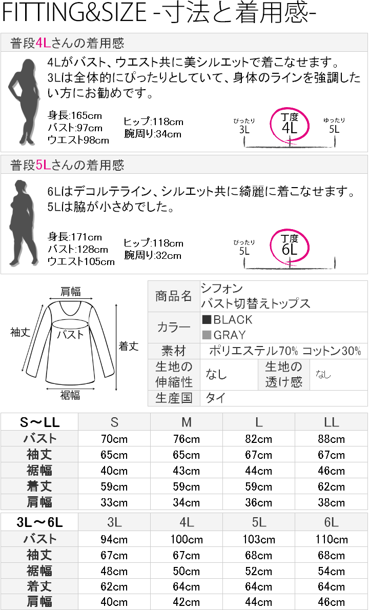 シフォン バスト切替えトップス(CR) 大きいサイズ 春 セクシー レディース ギャル服 ギャル 大人 13号 15号 17号 19号 LL 2L 3L 4L 5L 6L 6L