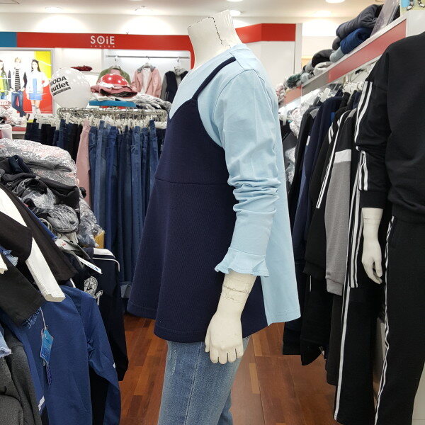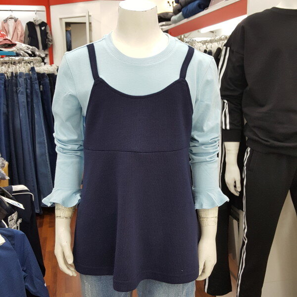 뷔스티에 티셔츠 입니다.조끼형태의 레이어드가 붙어있습니다.