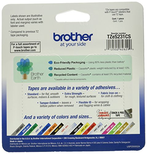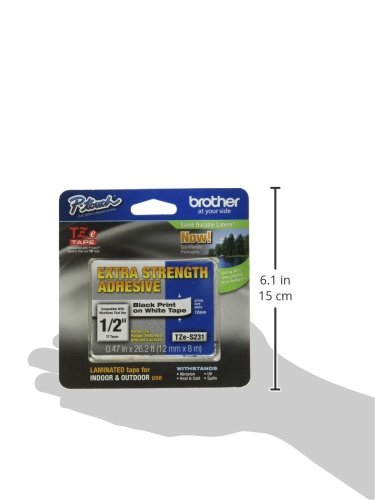 -. Title : Brother Laminated Tape Black on White Extra Strength (clam), 12mm (TZeS231CS) - Retail Packaging
