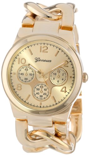 -. Title : Geneva Women's 2380-Gold-GEN Oversized Interlocked Chain Band Watch