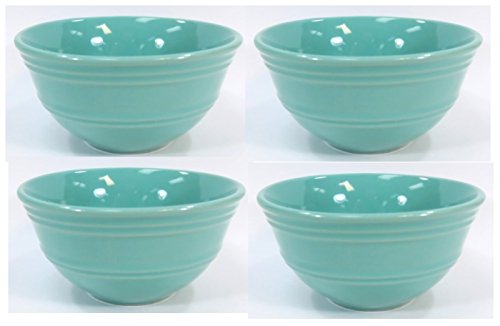 - Set of 4 Aqua Rain Forest Stoneware Small Ceramic Fruit or Dessert Bowls