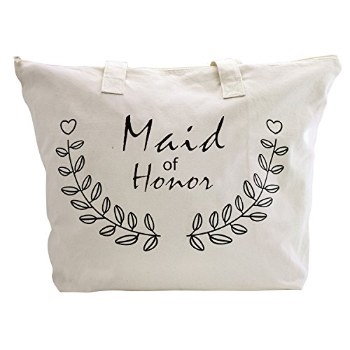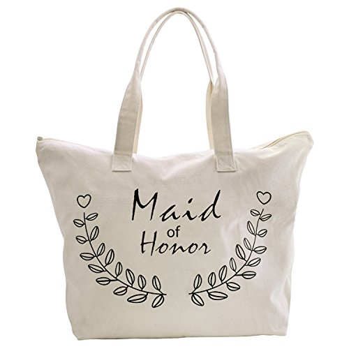 ElegantPark Maid of Honor Tote Bag for Wedding Bridesmaid Gifts Zip Canvas Cotton