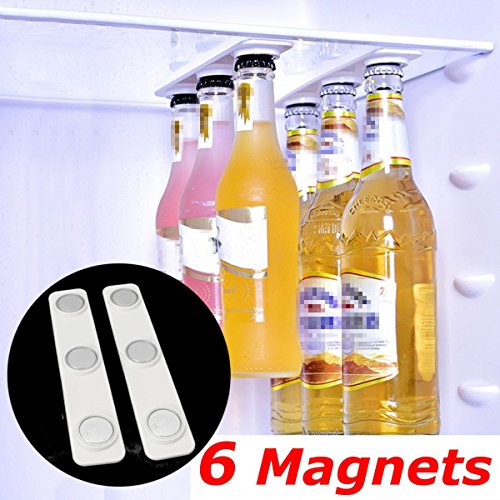 MOOMBIKE Magnetic Fridge Bottle Hanger - Beer Jar and Can Holder for Refrigerator or Cabinet, 2 Strip Pack of Strong Neodymium Magnets