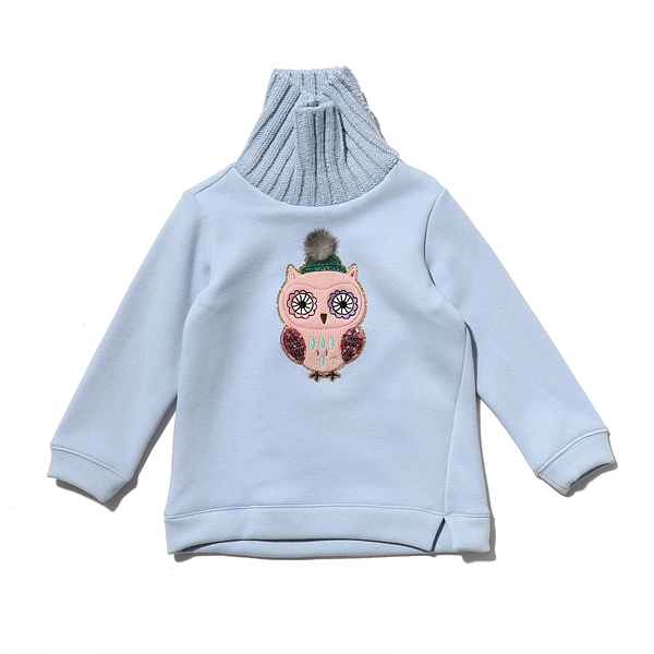 안쪽에는 전체적으로 기모처리가 되어 따뜻하며 부엉이패치가 있어 화사한 느낌으로 코디되는 티셔츠입니다.