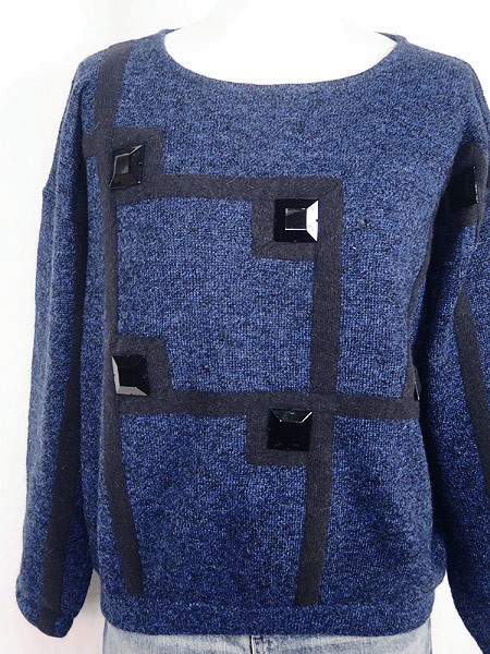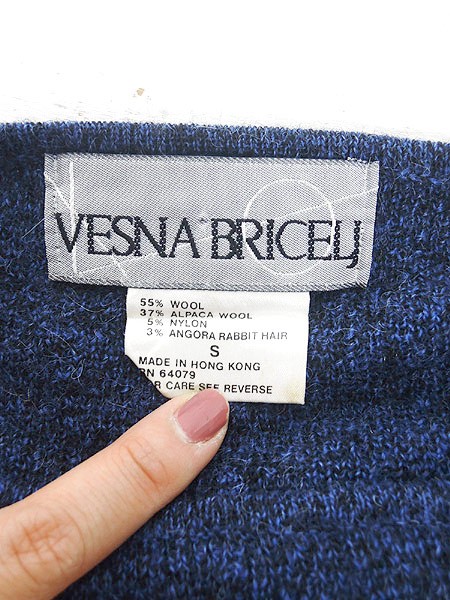 Ladies ブランド- カラー青・黒 メール便不可 コンディション★★★ モデル身長158cm 素材ウール55%・アルパカウール37%・ナイロン5%・アンゴララビット3% 表記サイズS 実寸サイズ 着丈 54 cm 身幅 55 cm 肩幅 56 cm 袖丈 41 cm ※ウエスト・ヒップ以外は平置き採寸