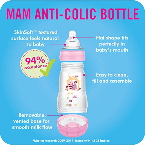 MAM Anti-Colic Baby Bottlesは、授乳中の赤ちゃんやフォーミュラで育てられた赤ちゃんにとって理想的な哺乳瓶です。母乳のように感じるように設計されたSkinSoft TMニップルを搭載して、母乳育児と瓶授乳を切り替えるのは簡単で簡単です。さらに良いのは、94%*の赤ちゃんがそれらを喜んで受け入れ、飲んでいます。これをMAM Anti-Colic Baby Bottlesの高度なアンチコリックデザインシステムと組み合わせることで、疝痛、ガス、逆流の症状を軽減できます。