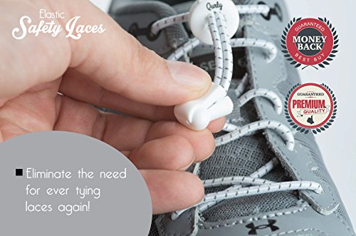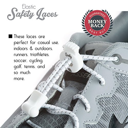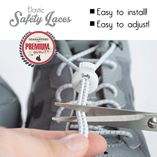 COMFORT IN EACH STEP ★ Qurly employees realize the importance of comfort when it comes to feet. The use of elastic laces helps redistribute the pressure of the laces evenly over the foot rather than just a concentrated area. Think of it as your foot being in a cockpit of a plane, nice and snug. This allows for greater blood flow and increased stability which only improves overall performance. Additionally, the reflective materials in the cords increase your visibility and safety.