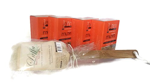 Feature : Tanaka Herbal Soap, Formulated from special natural ingredients. / Helps deeply cleanse and nurish to reveal a silky radiant skin. / After showering, you will experience a naturally refreshing aroma and have a smoother fresher skin texture. / Use for face and body cleansing twice a day. Collagen, CO Q10, Vitamin E, Whitening, and Moisturizing. / Included long handle of natural luffa for your back.