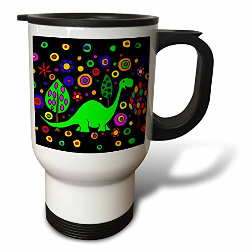 3dRose tm_200113_1 Funny Green Brontosaurus Dinosaur Art Abstract Travel Mug, 14-Ounce, Stainless Steel
