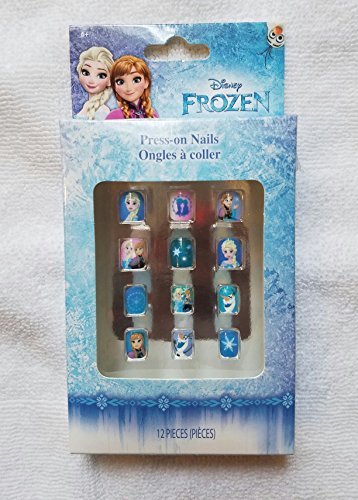 Disney Frozen Press-on Nails. Kid-sized and parent approved! Small plastic nails are fun and easy to apply, with no messy polish or remover! Perfect for sleepovers or princess parties! Each package has 12 pieces in assorted sizes for the perfect fit.