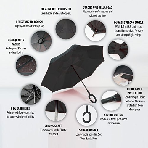 Would You Like To Remain Perfectly Protected And Dry During The Rain? Do You Want To Move Freely And Perform Any Task Without Worrying About The Weather? Well, If You Want To Make Your Life Easier, There Is Only One Thing That You Should Do! Make This Inverted Umbrella Yours! Rain is beautiful, romantic and relaxing for those who can stay home, gather around the fireplace and enjoy a hot cup of coffee! But what about active people like you who need to go to work, do the shopping or go and pick the kids from school? Well, bad weather will never stand in your way again! Brellax presents you with the ultimate inverted, windproof umbrella which is bound to offer you unmatched protection! Large Umbrella With Heavy Duty Fiberglass Frame And Durable Pongee Material That Can Keep You Perfectly Protected This amazing, inside out umbrella features a 102cm diameter, allowing you and your company to easily hide under it. Moreover, this double layer inverted umbrella is made of sturdy pongee cloth and it features a plastic metal wrapped shaft, as well as windproof fiberglass frame and ribs. To put it in the layman's terms, this must have reversible, windproof umbrella will keep you protected from wind, heavy rain, snow and harmful sunrays alike. Comfortable C Shape Handle And Clever Design That Will Keep Your Cars And Floors Clean And Dry Forget about umbrellas which are difficult to carry around! This elegant reversible umbrella features a handy c shape handle that allows you to keep your hands free! Moreover, the inside out folding design allows this umbrella to trap the water in it, protecting your floors and cars from turning into a wet mess. Click Add To Cart Now! 0 |