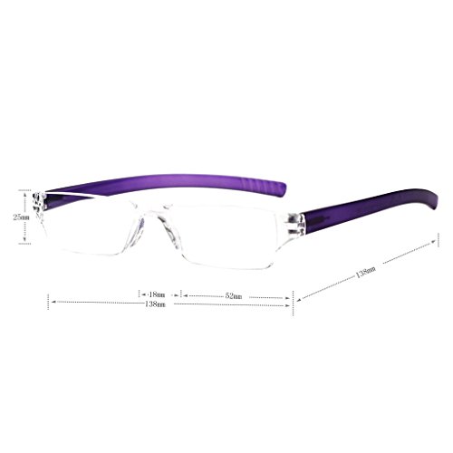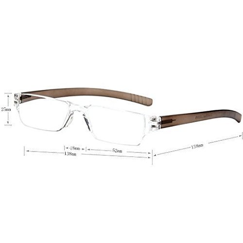 -. Feature : fashion reading glasses for men for women, lightweight, portable / 2 color: brown and purple. lens power: +1.00,+1.50,+2.00,+2.50,+3.00,+3.50,+4.00 / reading glasses 1.00, reading glasses 1.5, reading glasses 2.0, reading glasses 2.50, reading glasses 3.00, reading glasses 3.5, reading glasses 4.00 / size: lens width: 52mm, lens height: 25mm, bridge: 18mm, temple: 130mm / PACKAGE CONTENTS: 2 Pair of reading glasses, 2 Cleaning Cloth, 2 Cases, 1 valve bags