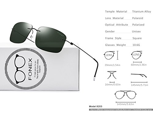 FONEX Frameless Polarized Rimless Sunglasses for Women Men with Titanium Alloy 8203